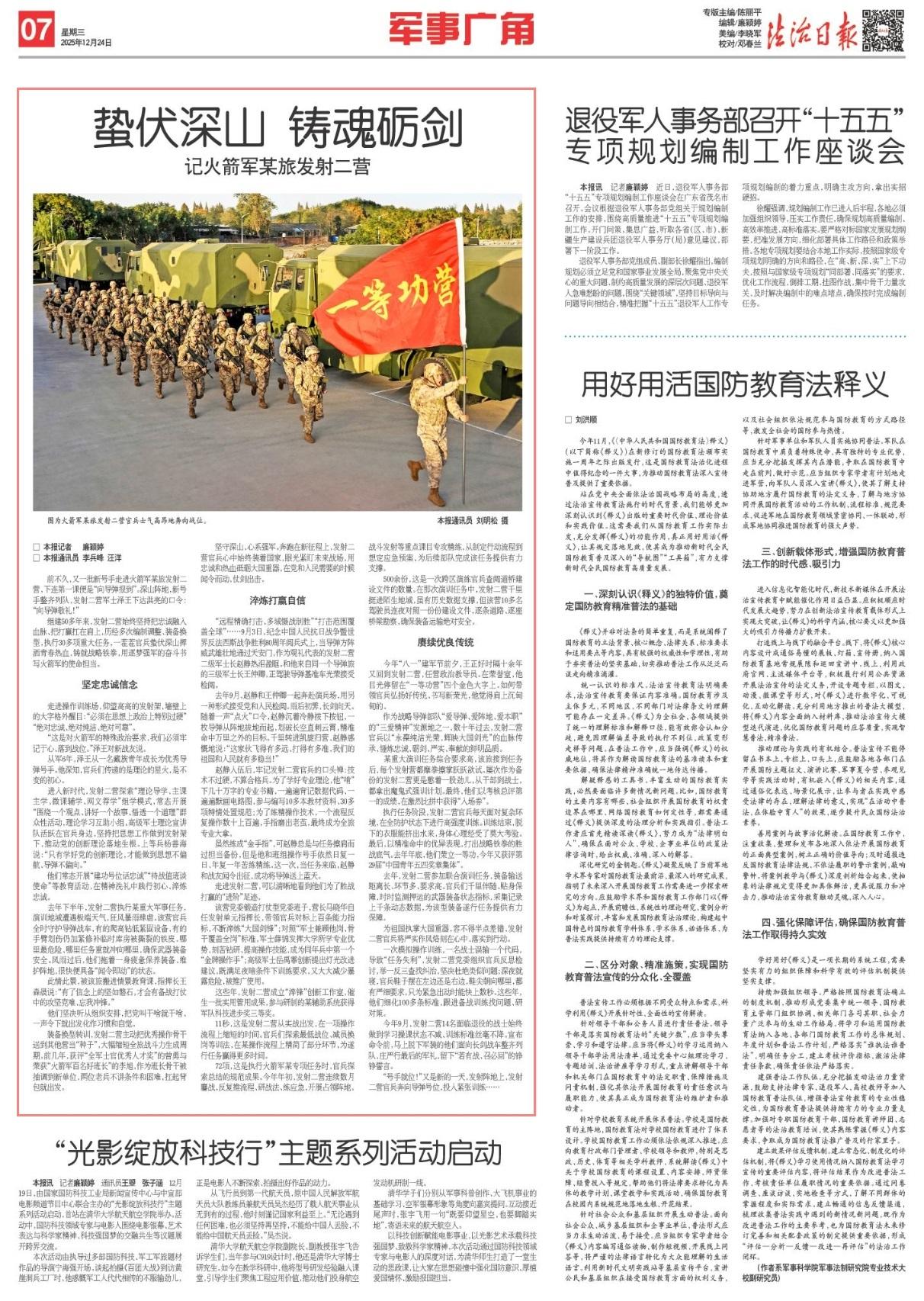 組建50多年來,發(fā)射二營始終堅持把忠誠融入血脈、把打贏扛在肩上,歷經(jīng)多次編制調(diào)整、裝備換型,執(zhí)行30多項重大任務(wù),一茬茬官兵蟄伏深山揮灑青春熱血,鑄就戰(zhàn)略鐵拳,用逐夢強(qiáng)軍的奮斗書寫火箭軍的使命擔(dān)當(dāng)。